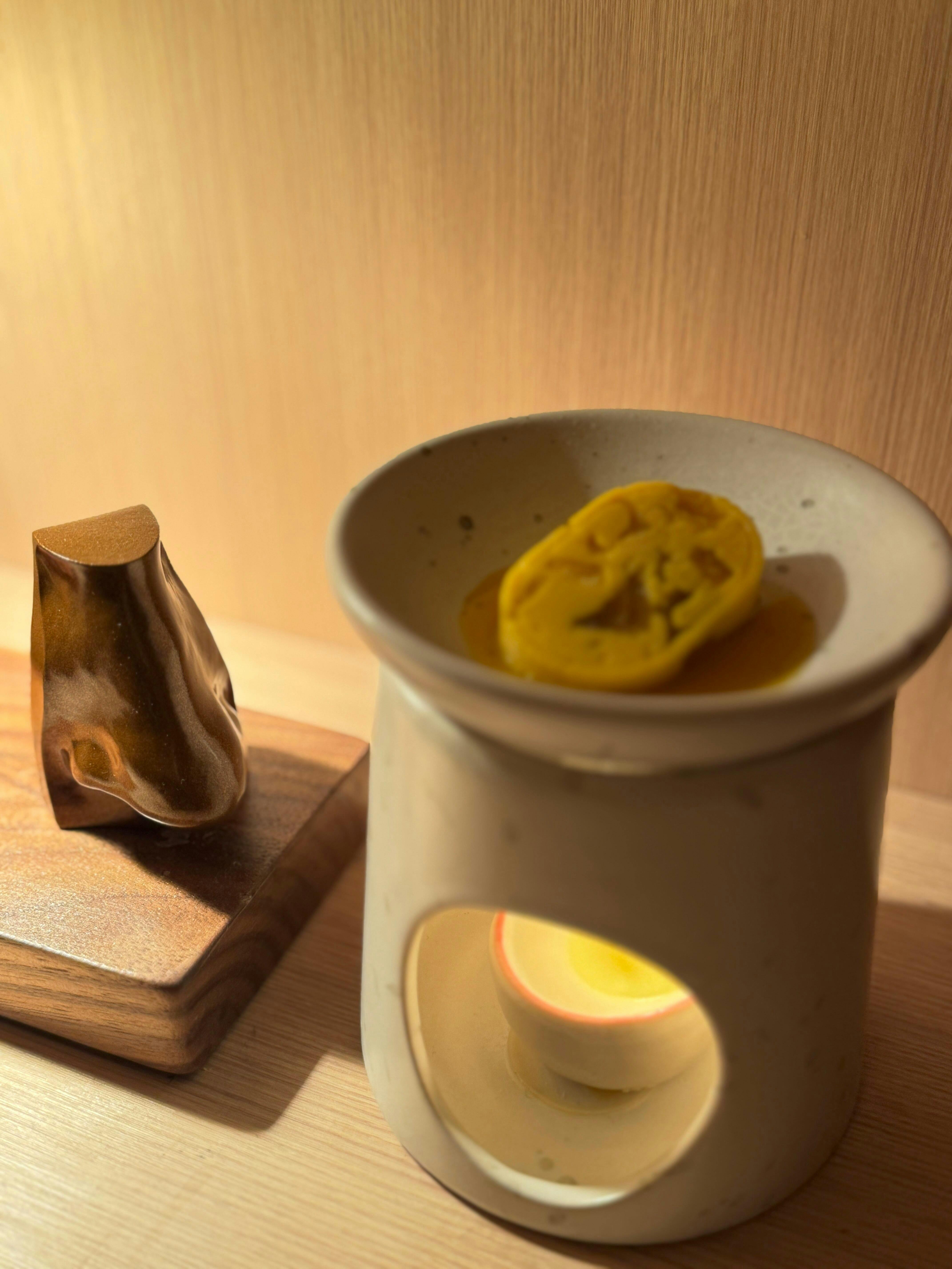 ╹If you're using a tea light oil burner, put your tea light into the designated hole. -